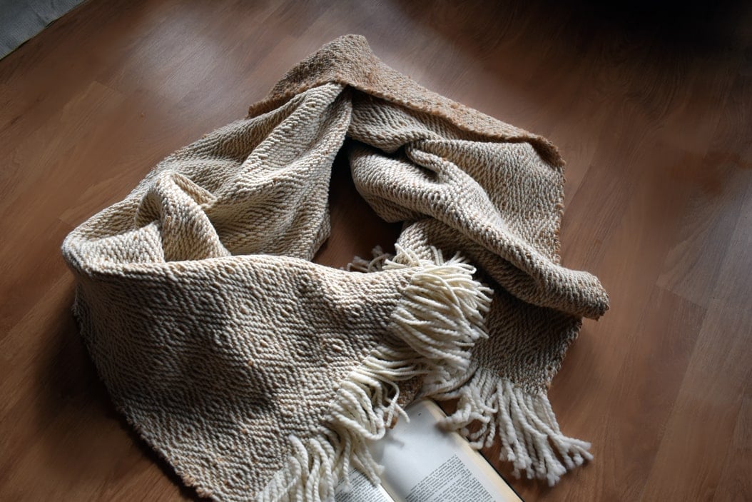 Este chal está fabricada en lana de oveja, y un exquisito tinte natural, el cual se extrae de la palta, es un tejido donde sus hebras van entrelazadas, conformando un tejido cerrado, lo que lo hace retener más calor, una mayor resistencia y durabilidad en comparación con otros tejidos. Su tonalidad café claro es perfecta para combinar con diferentes estilos y colores de ropa de cama permitiéndote crear el ambiente que deseas al añadirla sobre un cubrecama o plumón. Agrega un toque extra de comodidad a tus noches.
